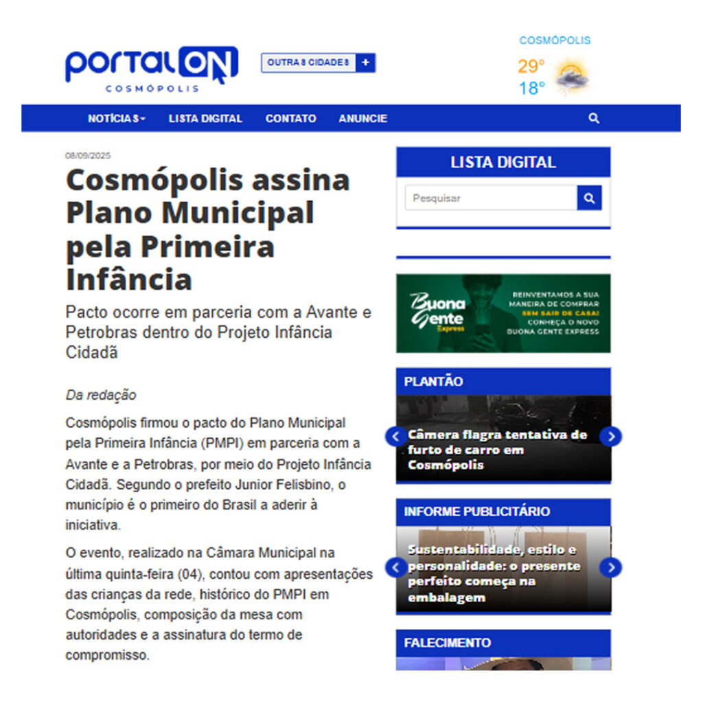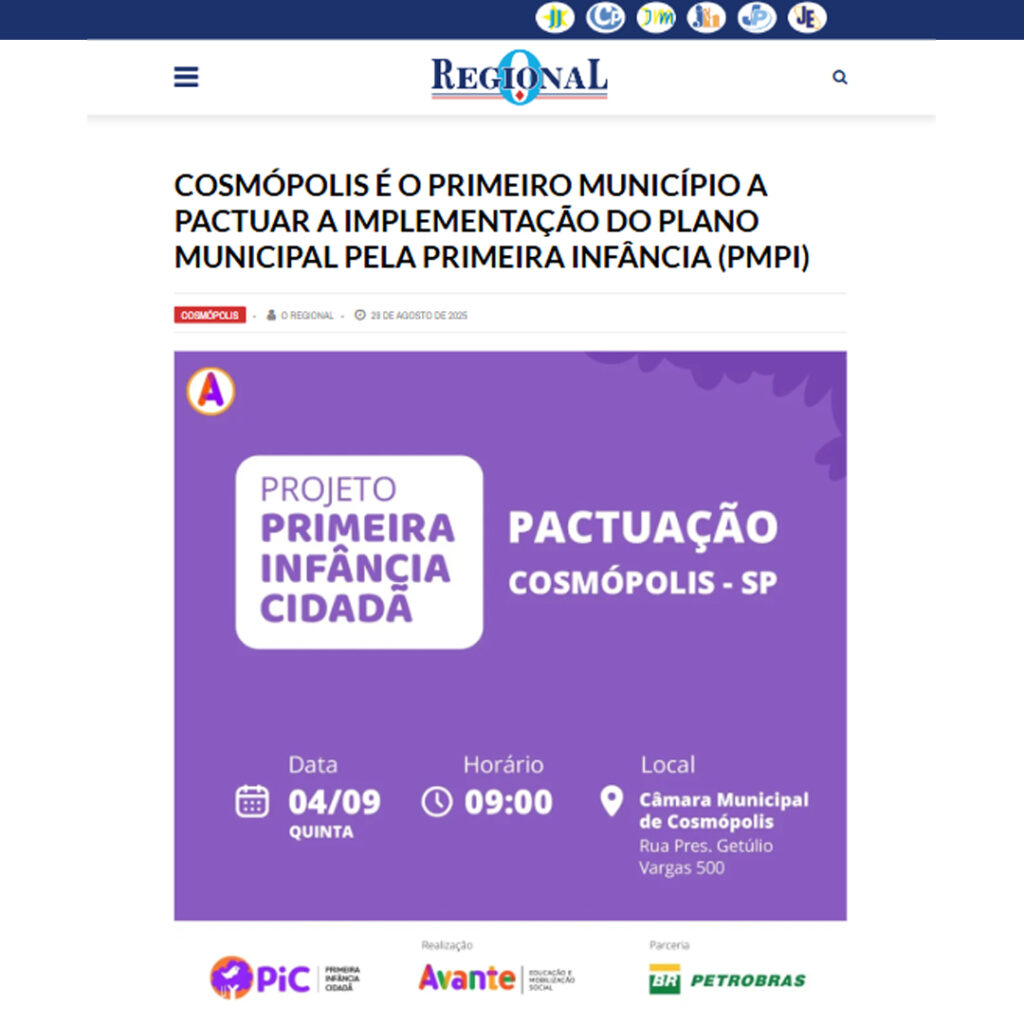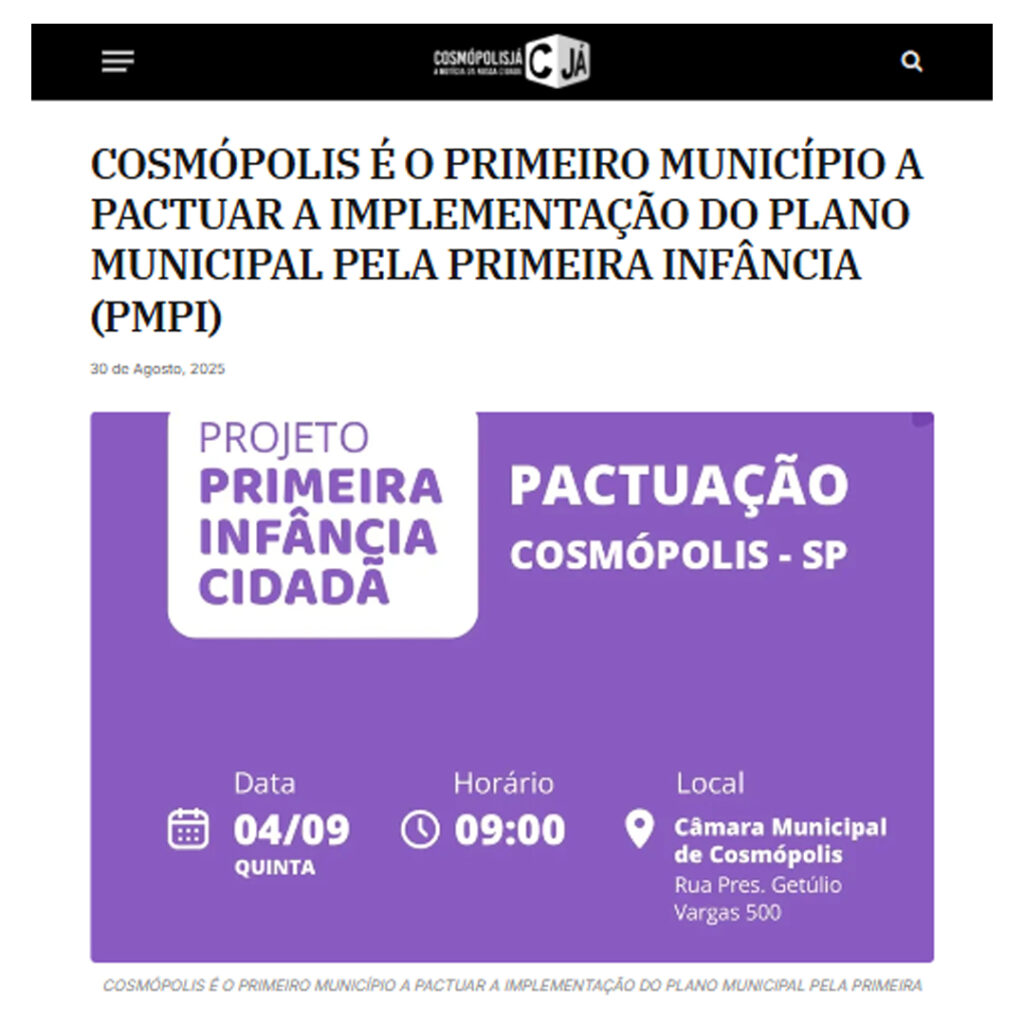 Cosmópolis é o primeiro município a pactuar a implementação do plano municipal pela primeira infância (PMPI)