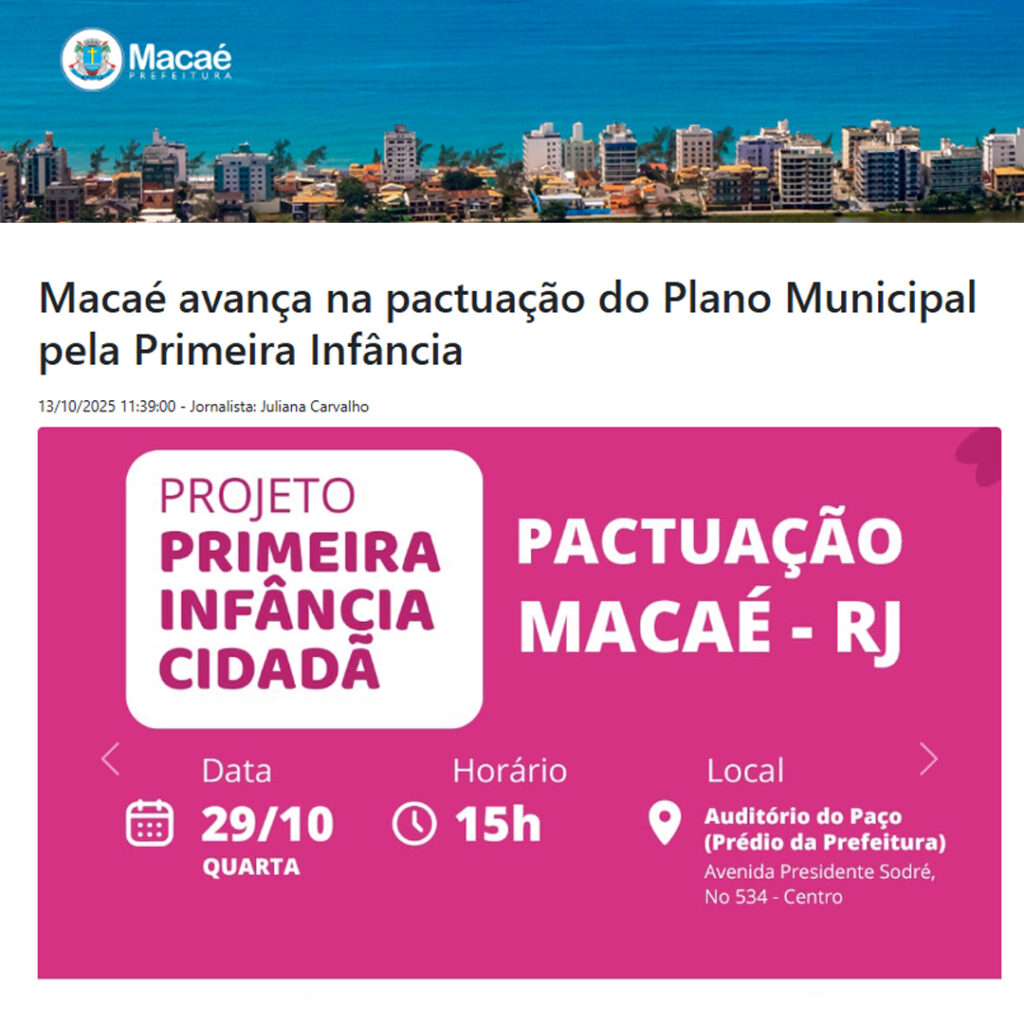 Macaé pactuará para a implementação do plano municipal pela primeira infância (PMPI)