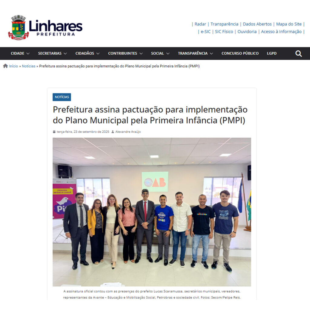 Plano Municipal pela Primeira Infância em destaque em Linhares