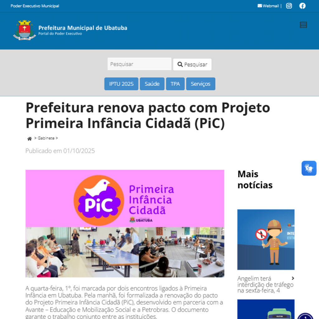 Prefeitura renova pacto com Projeto Primeira Infância Cidadã (PiC)