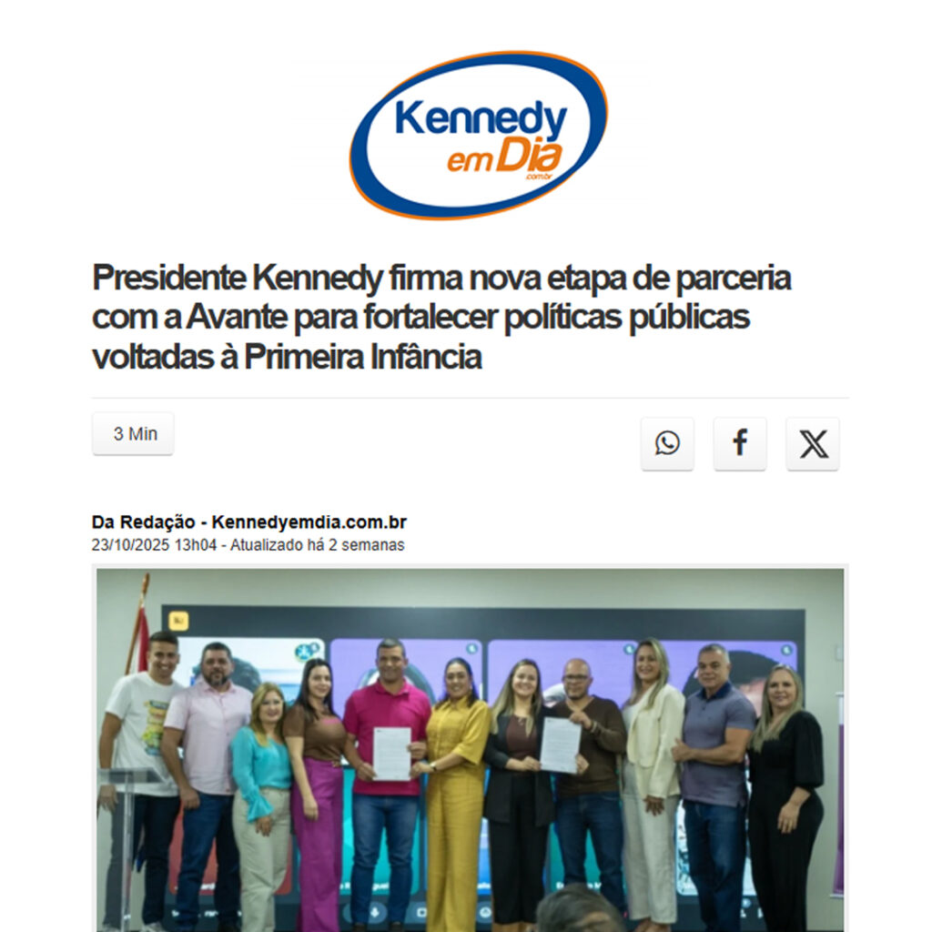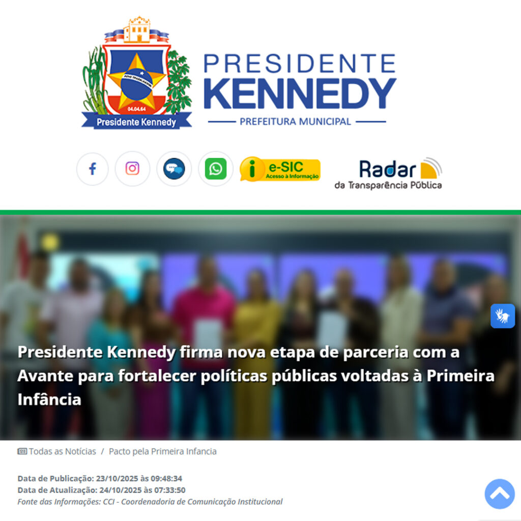 Presidente Kennedy firma nova etapa de parceria com a Avante para fortalecer políticas públicas voltadas à Primeira Infância