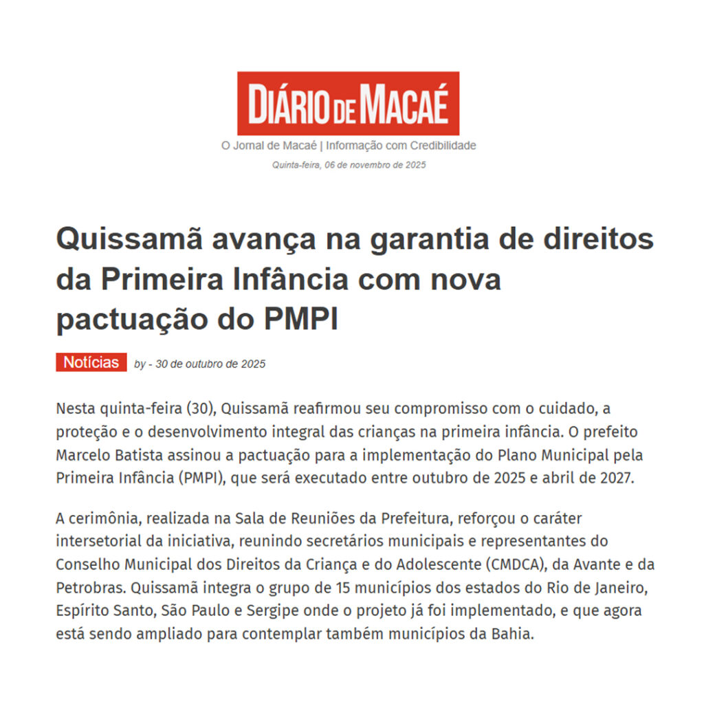 Quissamã avança na garantia de direitos da Primeira Infância com nova pactuação do PMPI