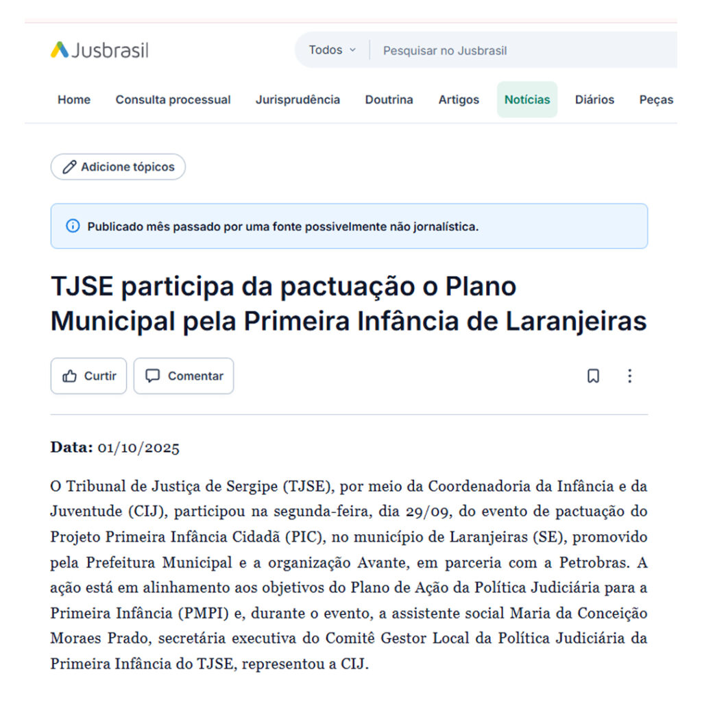 TJSE participa da pactuação o Plano Municipal pela Primeira Infância de Laranjeiras
