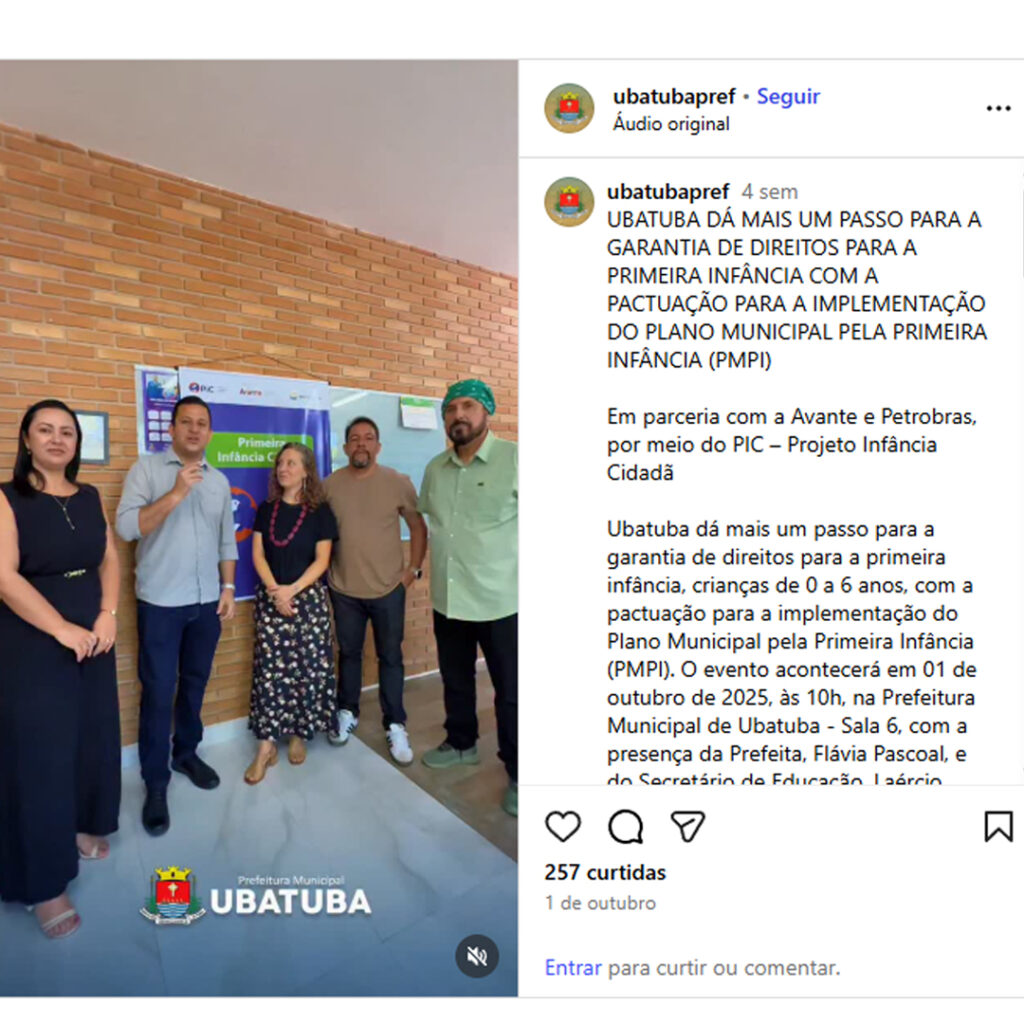 Ubatuba dá mais um passo para a garantia de direitos para a primeira infância com a pactuação para a implementação do plano municipal pela primeira infância (PMPI)